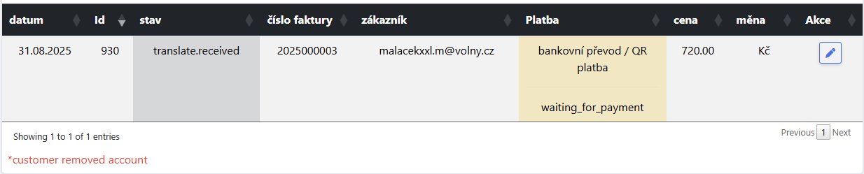 máte zde i možnost kontroly objednávek u daného zákazníka.